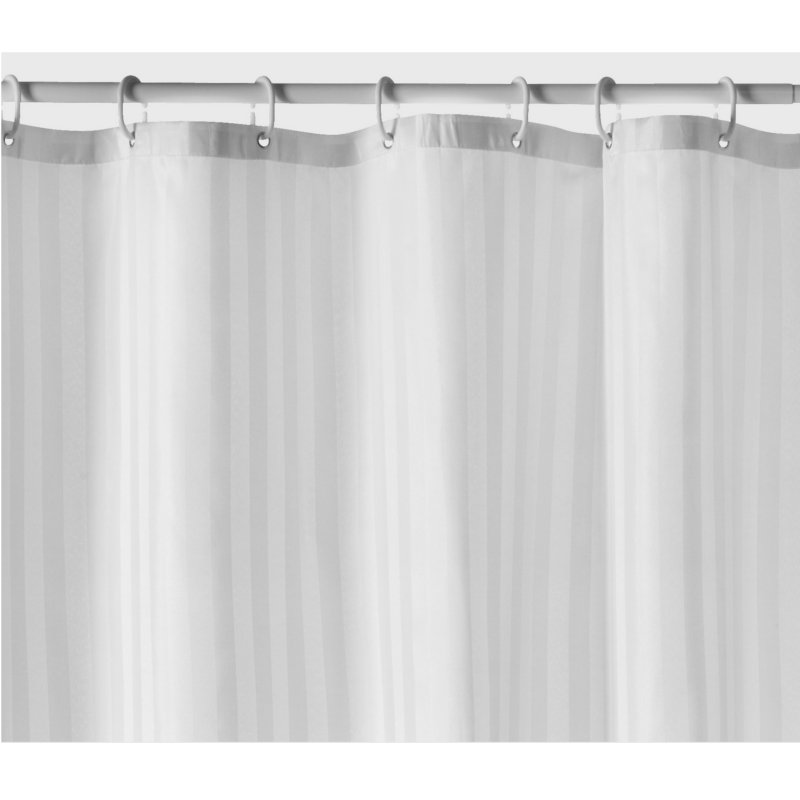 Duschdraperi 180×200 textil vit rand är kantsydd runtom, med ett viktband nedtill som håller draperiet på plats. Mjukt 100% polyestertyg som är vattenavvisande och antimögelbehandlat. 12 rostfria öljetter.