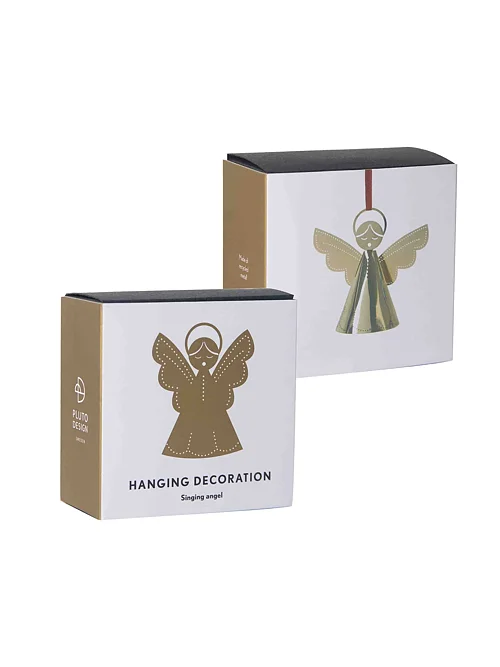 Julpynt hänge ängel är en sjungande ängel i guldmetall, perfekt att hänga i granen, fönster eller dekorera ditt blomsterarrangemang med. Kommer i en fin liten ask.