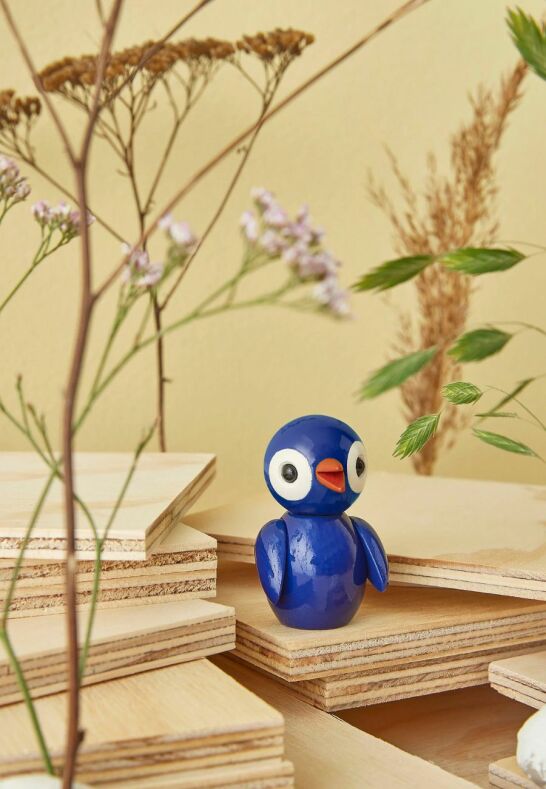Spring Birds dazzling dark blue är en charmig träfågel designad av Chresten Sommer för Spring Copenhagen. Denna lilla fågel förvandlar vardagens plikter till lekfulla stunder med sin livliga personlighet. Tillverkad av FSC®-certifierad bok, kombinerar Bold Black hållbarhet med skandinavisk designtradition.